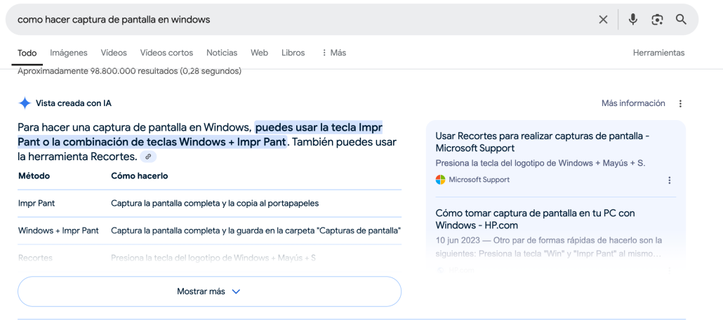 En lugar de una lista tradicional de enlaces azules, cada vez más en más ocasiones aparece un resumen generado por inteligencia artificial.