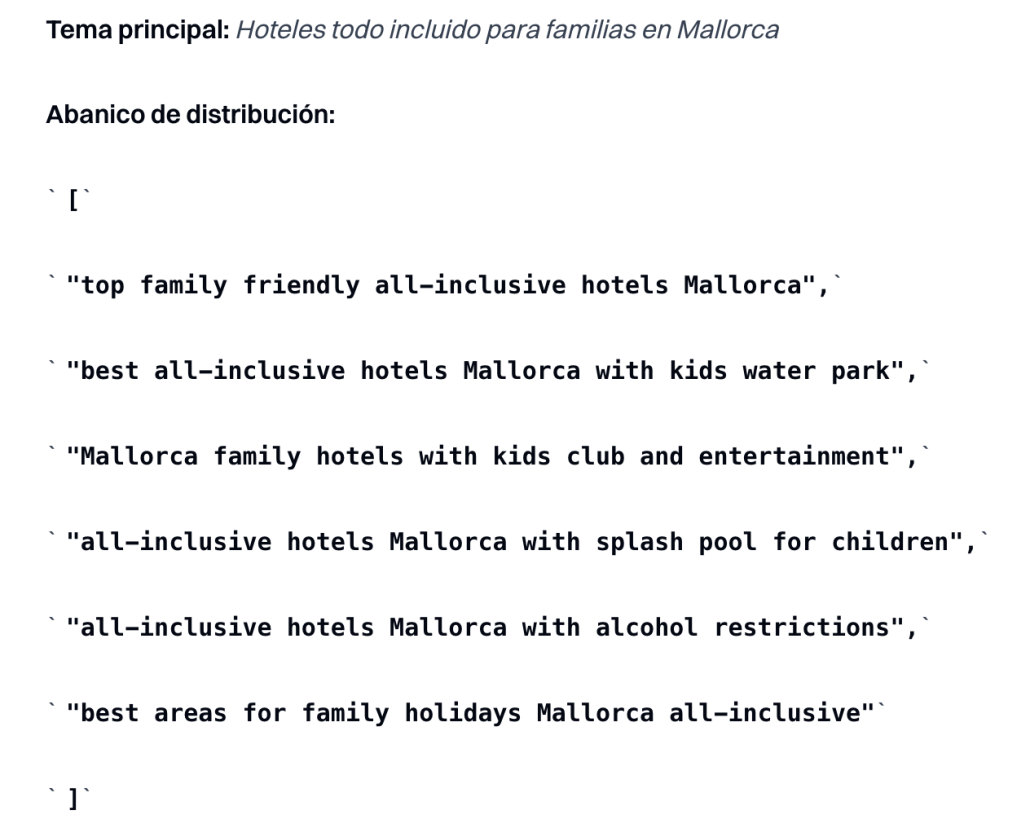 Como ves, una sola búsqueda se convierte en un enjambre de preguntas relacionadas, y la IA decide qué fragmentos de contenido responden a qué partes.