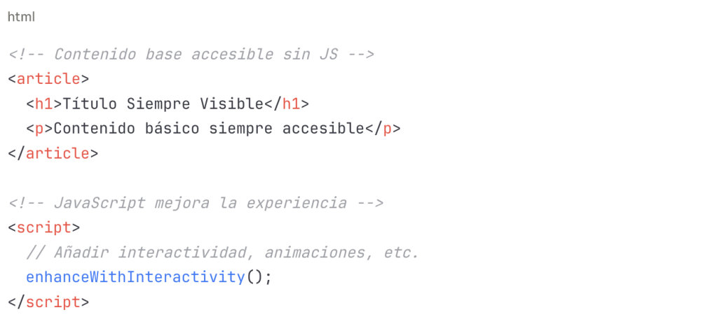 - Dependencia total de JavaScript: Sin JS, la página aparece completamente en blanco