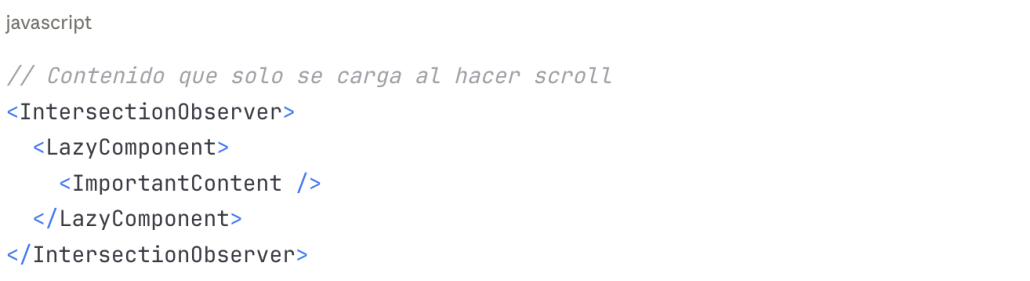 - Bundle size considerable: Los archivos JavaScript pueden ser pesados, aumentando el tiempo de carga