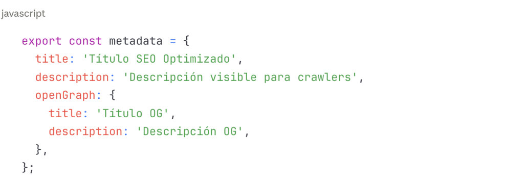 Los metadatos SEO gestionados dinámicamente (títulos, descripciones, Open Graph tags) mediante JavaScript pueden no ser reconocidos: