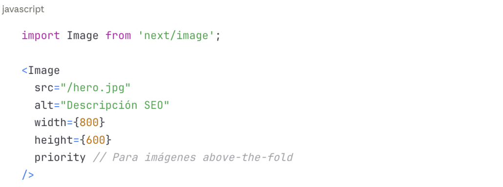 - Image Optimization: Componente Image optimizado para SEO