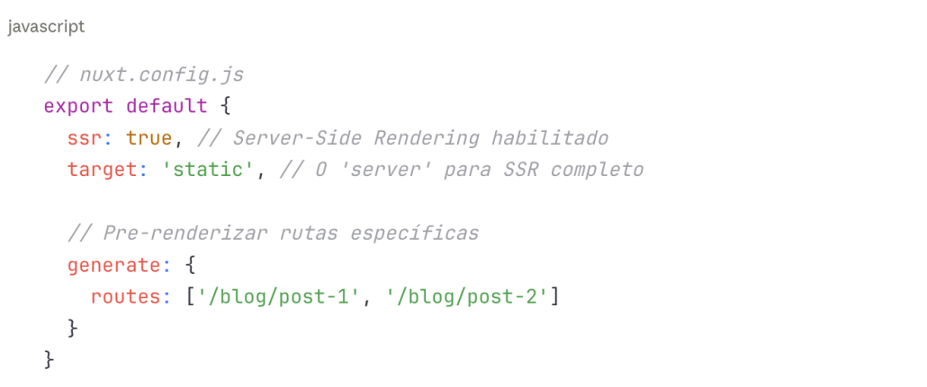 - SSR/SSG integrado: Múltiples modos de renderización