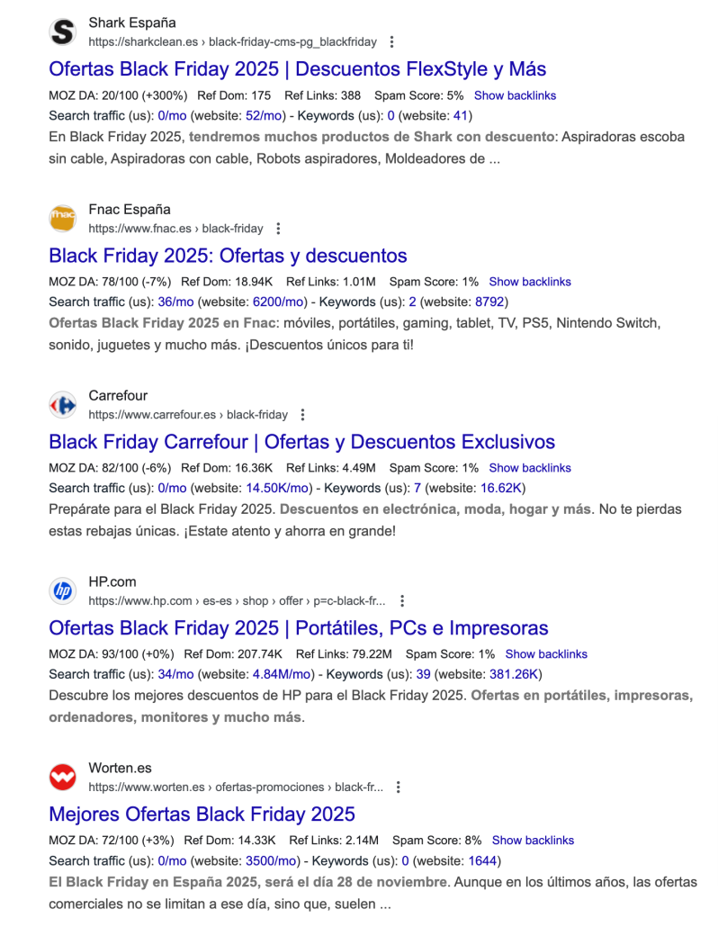 A no ser que seas una gran tienda no vas a poder competir por las palabras genéricas ( black friday, black friday 2025, ofertas black friday,..).